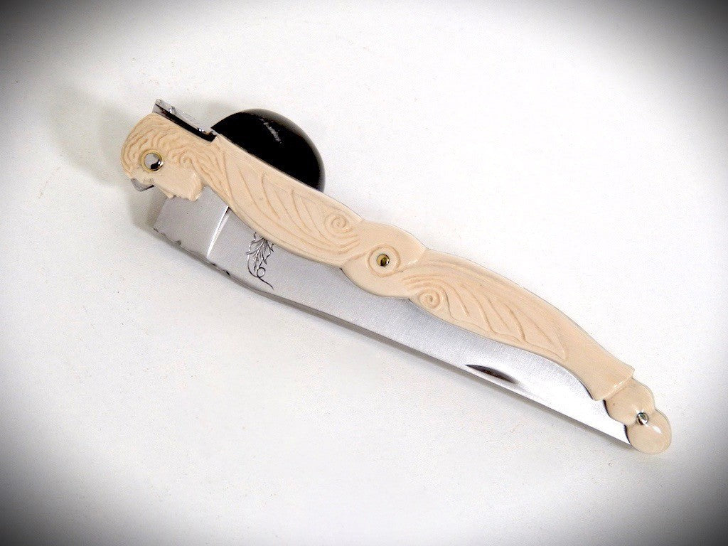 Gamme Laguiole vieillis, Gamme ressorts ciselés, Gamme Salettes, Demoiselle de l'aubrac, rosace sculptées, feuilles sculptées, laguiole droits sculptés, etcetera.Passionné par les couteaux laguiole et les techniques d'embellissement