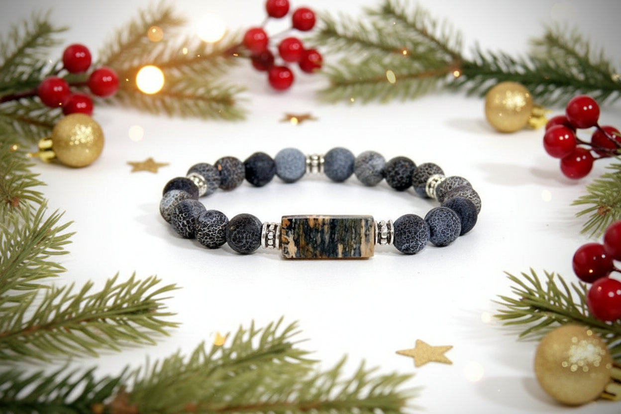 Bracelet Ivoire de Mammouth, Pierre de Lave grises fabriqué artisanalement par Y.S CRÉATIONS