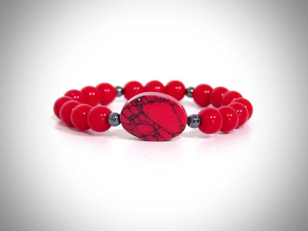 Armband aus rekonstituiertem rotem Jaspis und natürlichen Korallenperlen, mit rotem Bambus, handgefertigt von YS CRÉATIONS