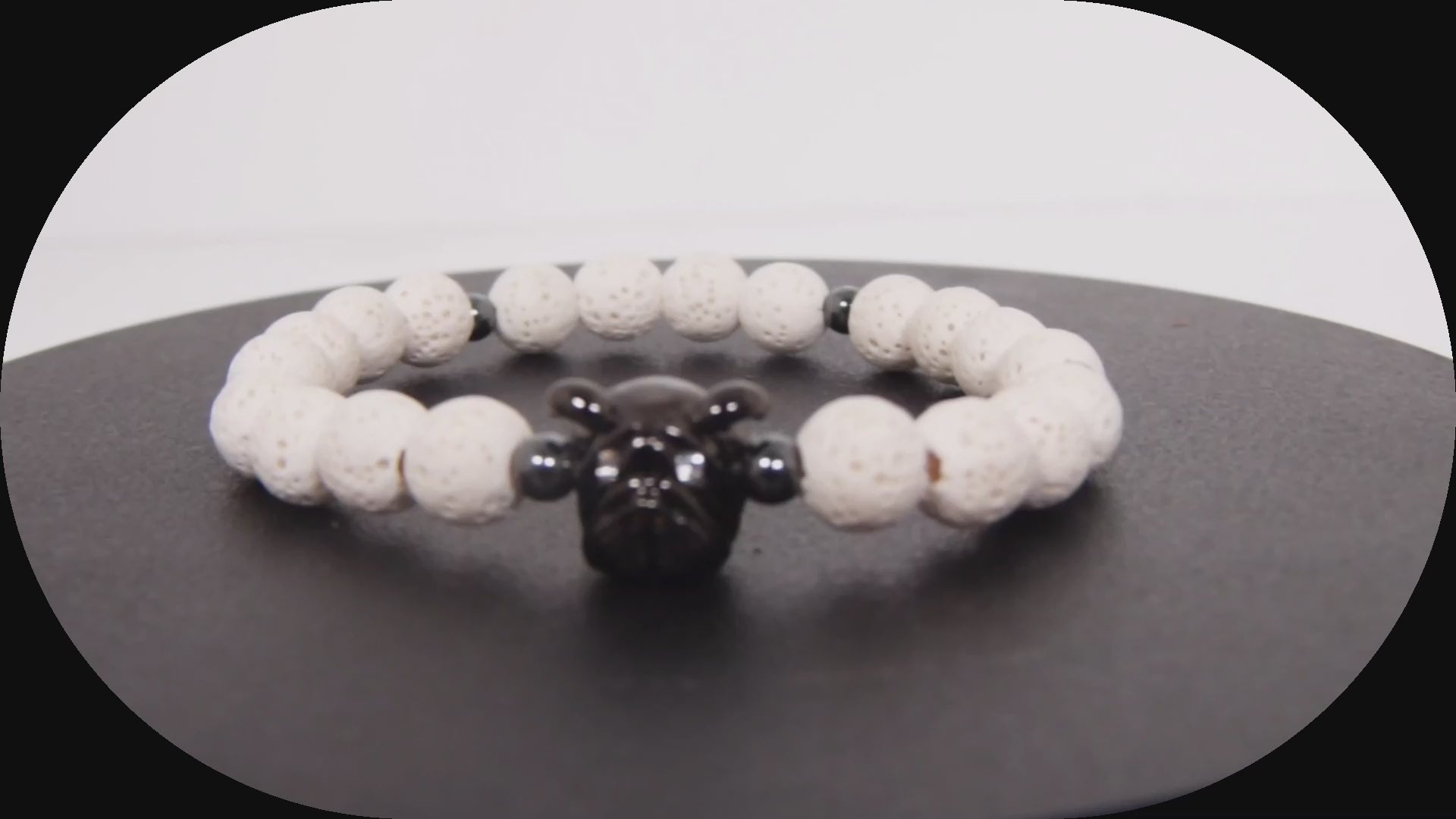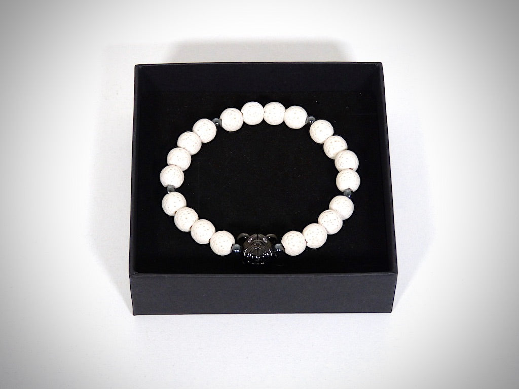 Bracelet "Bouledogue" Pierre de Lave Blanche, Hématite noire fabriqué par Y.S CRÉATIONS