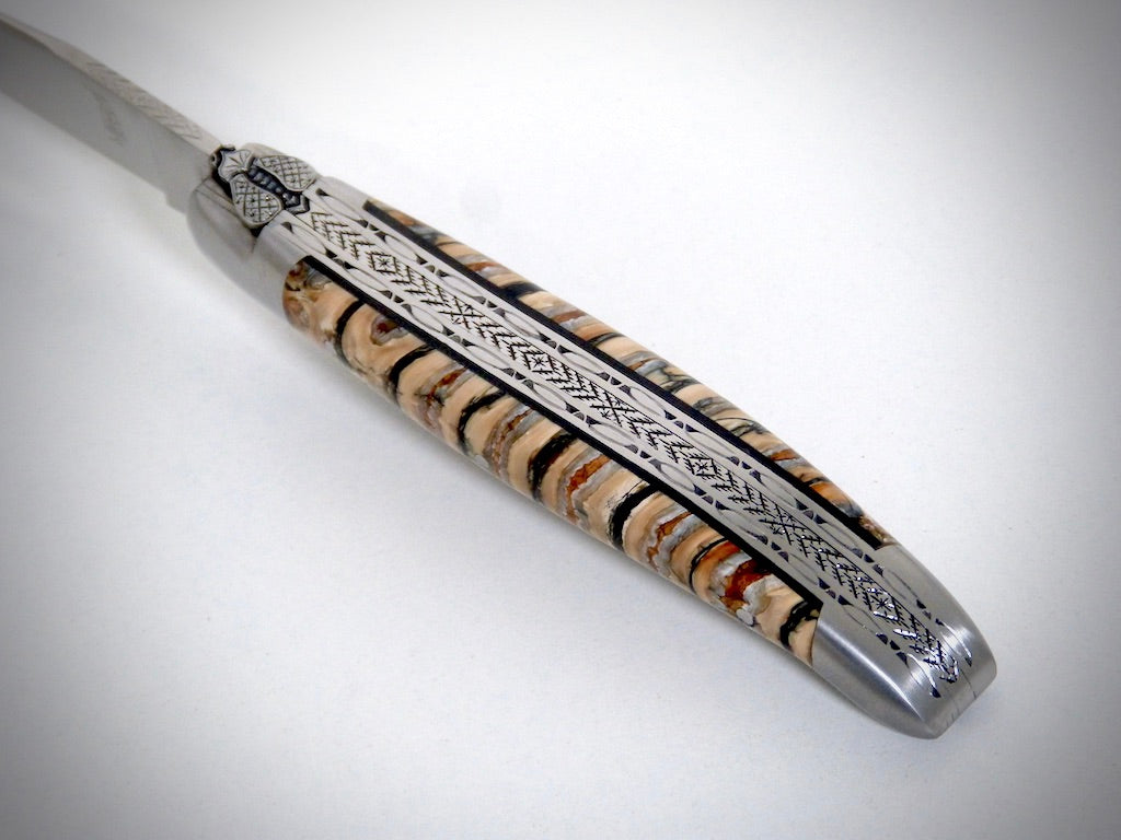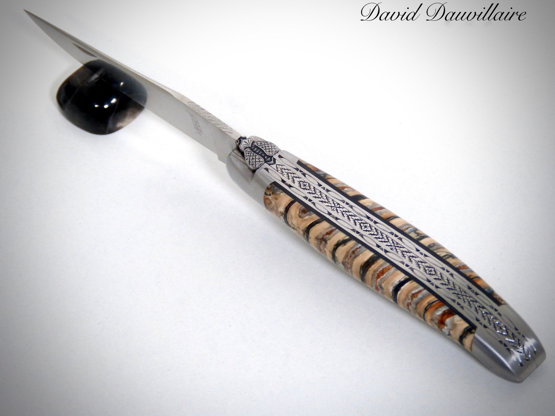 Laguiole Molaire de Mammouth ciselé par David DAUVILLAIRE