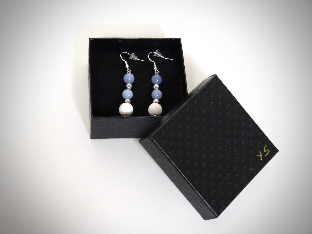 Boucles d'oreilles Pierre naturelles Aigue marine et Pierre de lave blanche fabriquées artisanalement par Y.S CRÉATIONS
