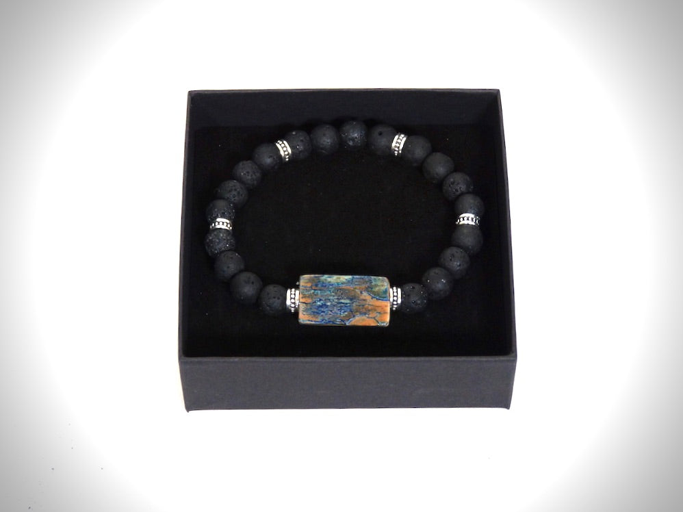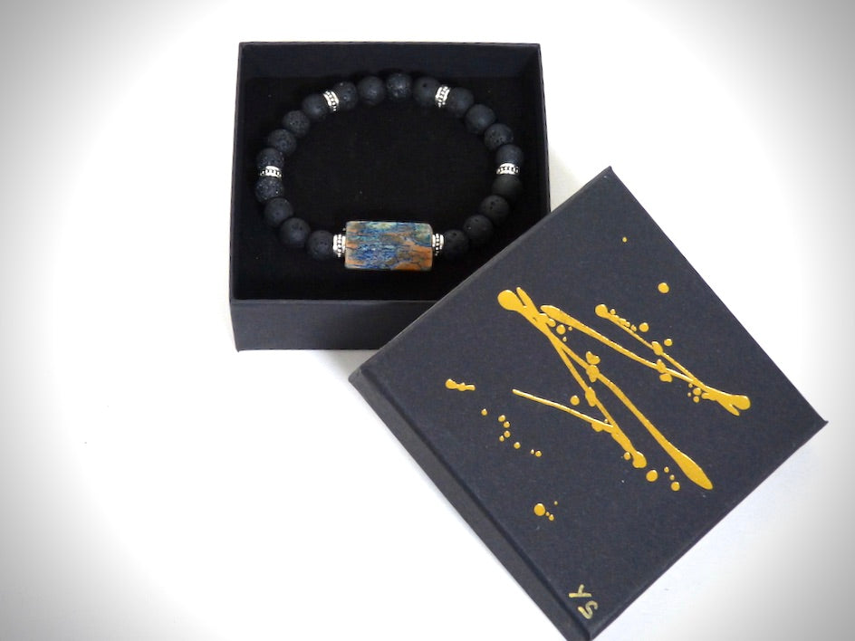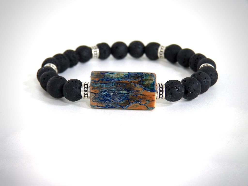 Bracelet Ivoire de mammouth bleu, Pierre de Lave fabriqué artisanalement par Y.S CRÉATIONS