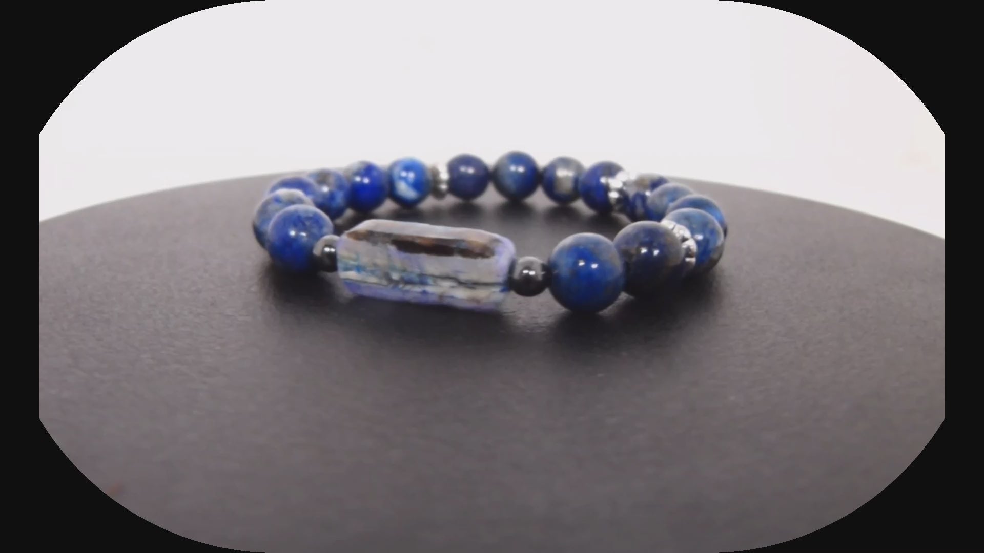 Bracelet Molaire de Mammouth Bleu, Pierres naturelles Lapis Lazuli
