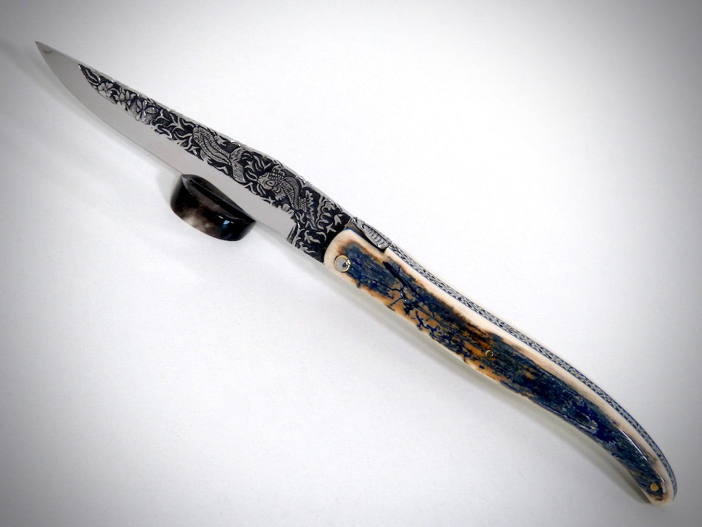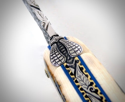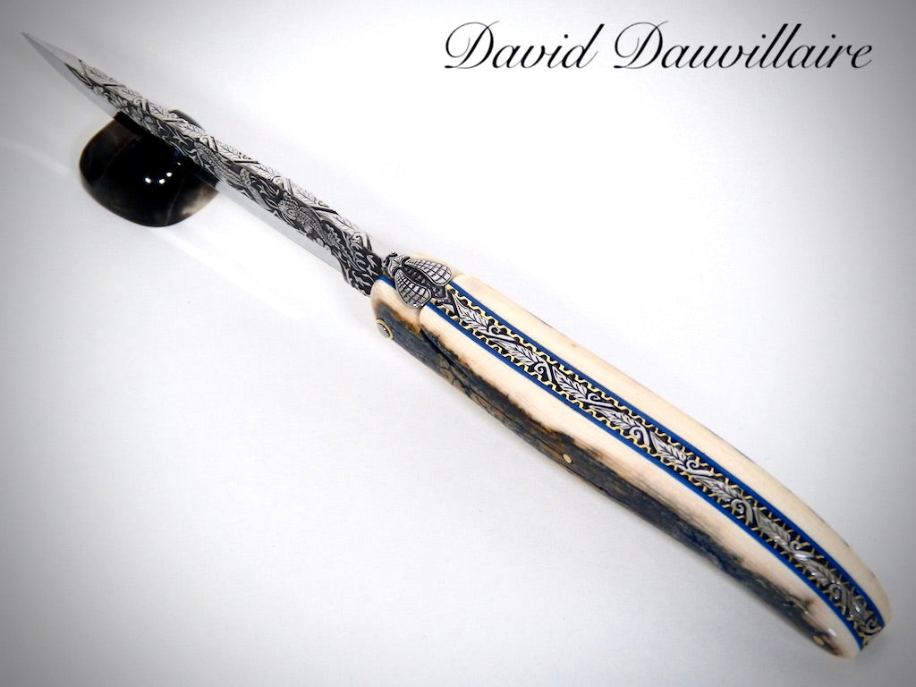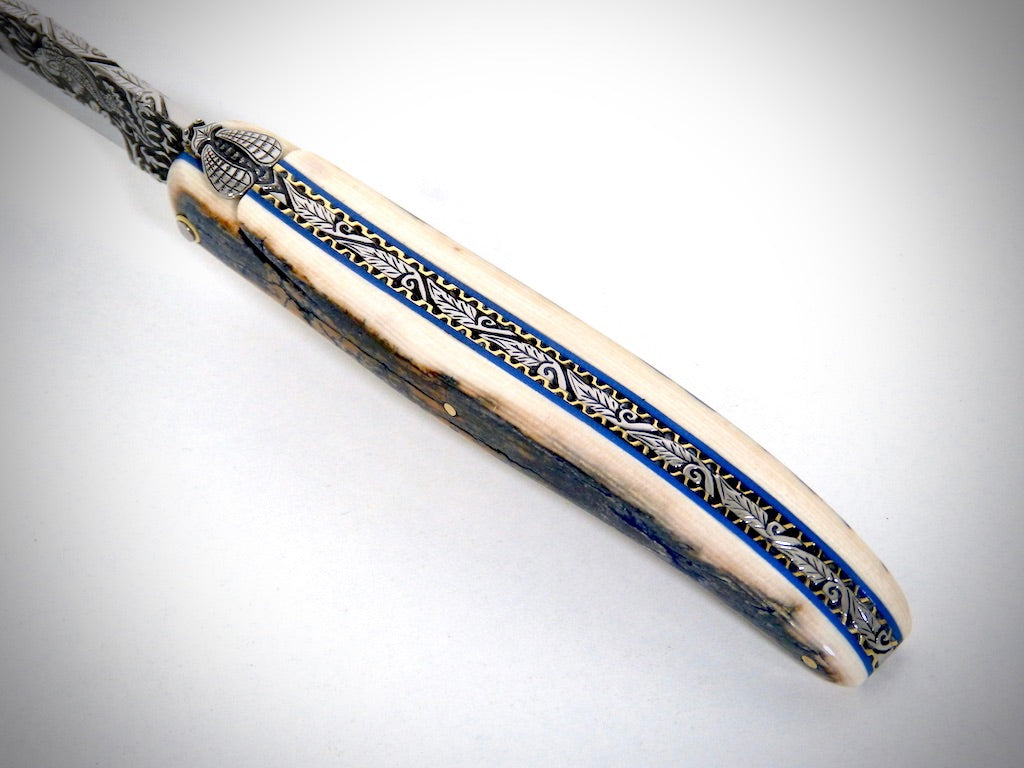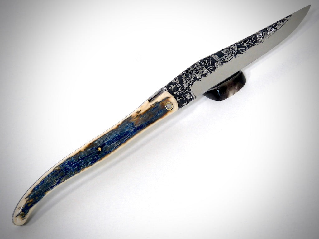 Laguiole "Koi" Ivoire de Mammouth bleu stabilisé par David DAUVILLAIRE