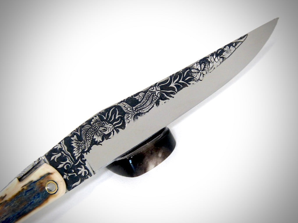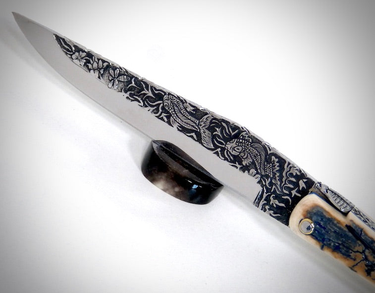 Lame en acier 14c28 inoxydable, gravée "Koï"