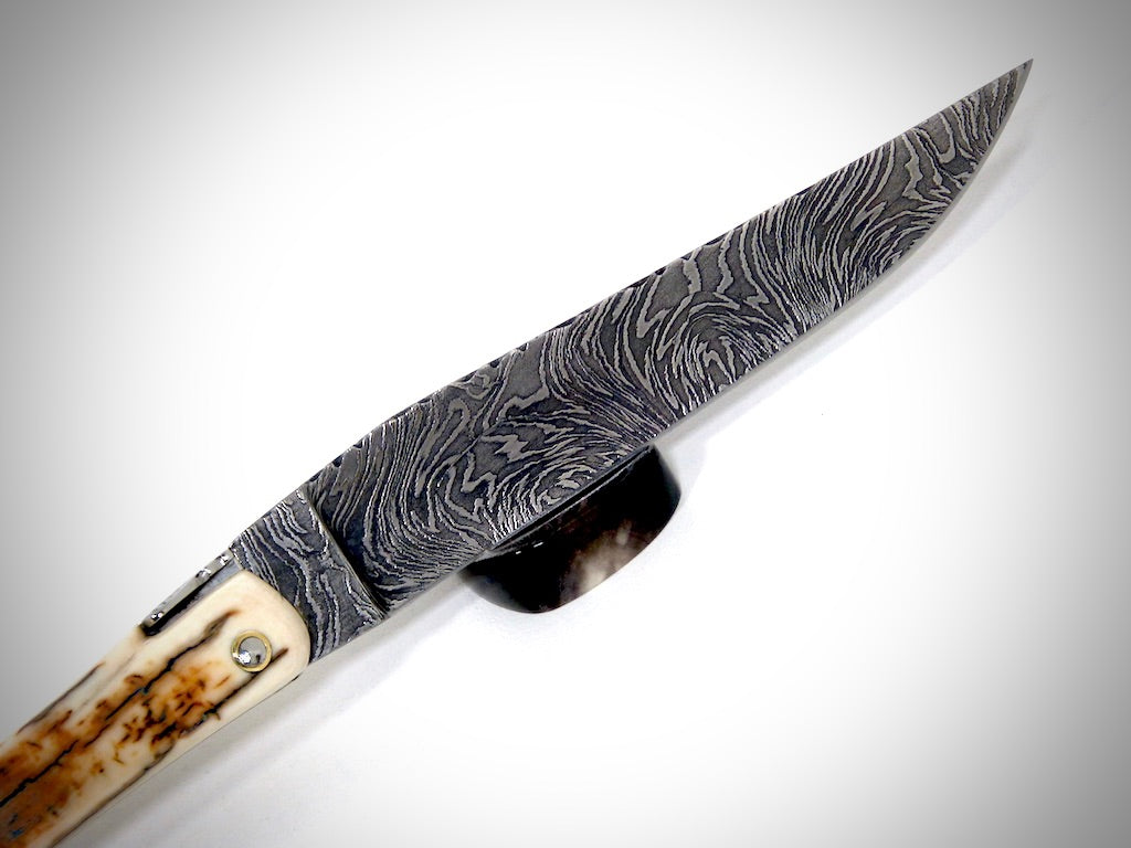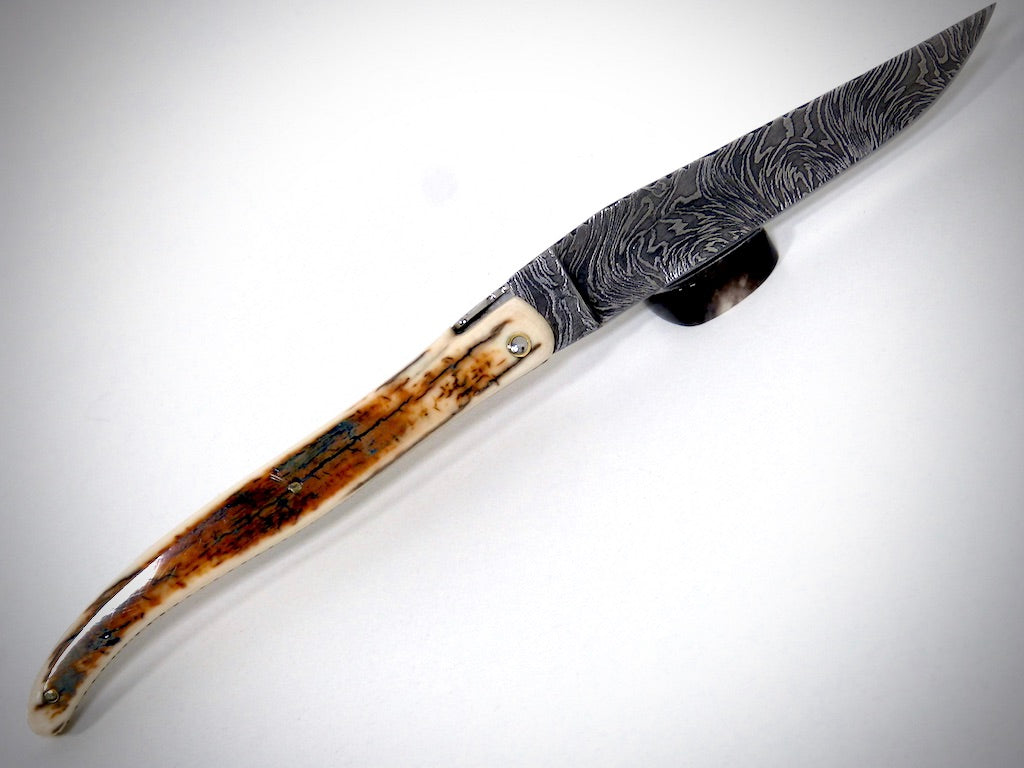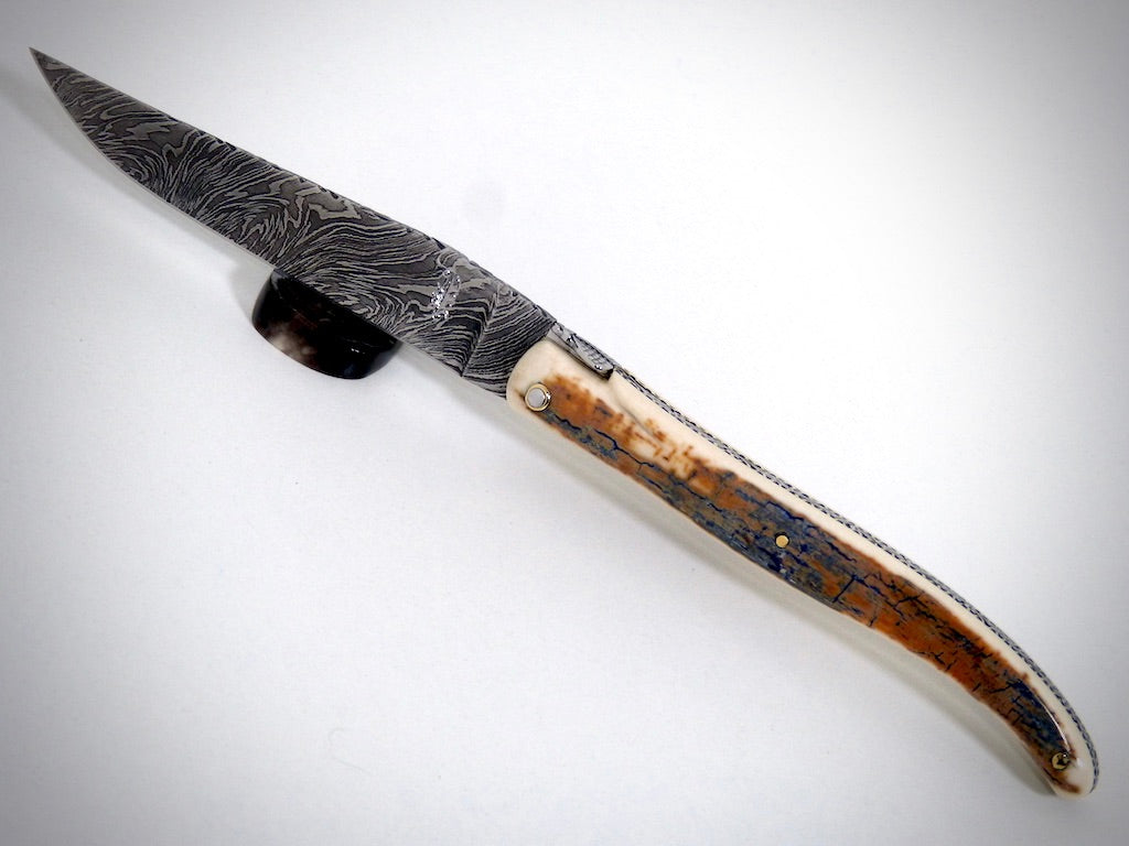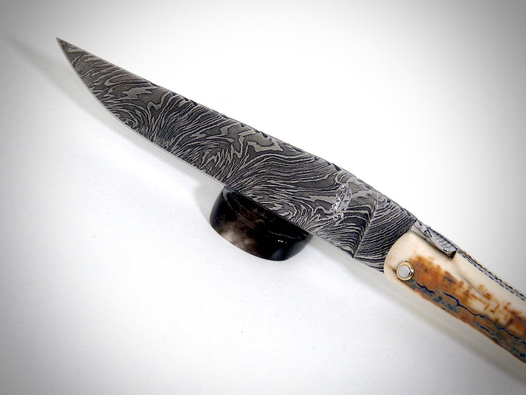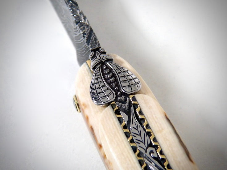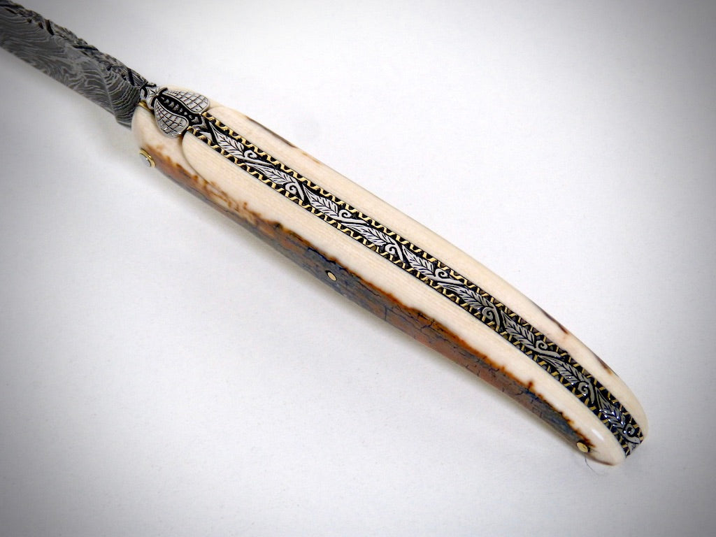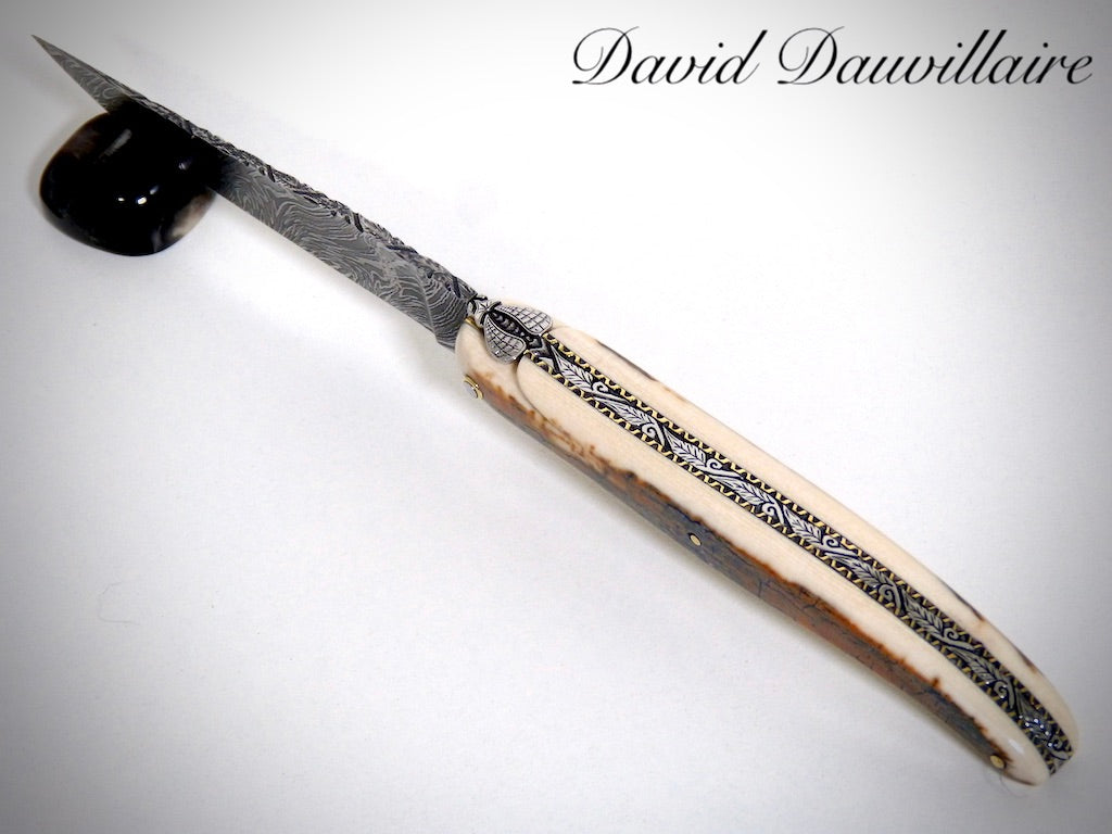Laguiole Ivoire de Mammouth, lame damas explosion ciselé par David DAUVILLAIRE