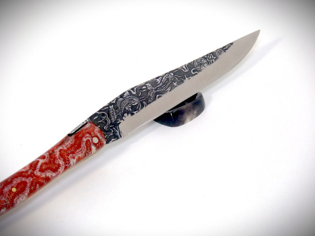 Laguiole“Koï”化石珊瑚,大卫·多维莱尔(David Dauvillaie)雕刻的刀片